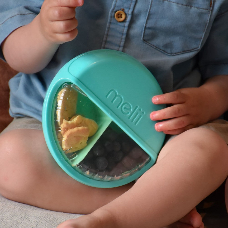 The Melii Spin Snack Container is compact and portable, the perfect travel companion!